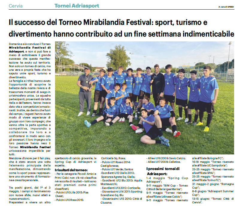- Romagna Sport: Iscrizioni, I numeri del torneo e presentazione, Partite, Resoconto;